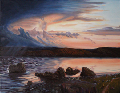 - In this piece I have borrowed the composition of the lake from a Vasilij Dmitrievich Polenov painting, and mixed it up with a sunset I saw from my studio window and some other images. Polenov was a Russian landscape painter associated with the Peredvizhniki movement of realist artists. I am now doing a second painting on this subject from a different perspective.